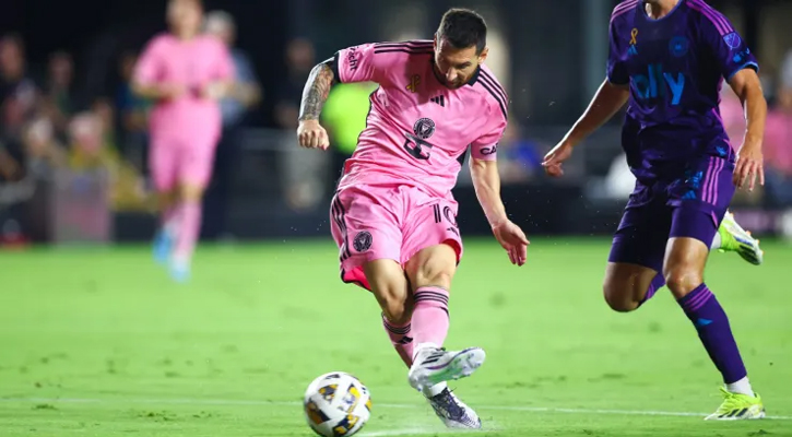 প্রথম সুযোগ কাজে লাগাতে না পারলেও দ্বিতীয়বারের প্রচেষ্টায় ঠিকই গোলের দেখা পান মেসি। ৬৭তম মিনিটে বক্সের বাইরে থেকে মেসির বাঁ পায়ের জোরালো শট আর ঠেকাতে পারেননি শার্লট গোলরক্ষক। এবারের মেজর লিগে এটা মেসির ১৫তম গোল। ওই গোলেই শেষ রক্ষা হয় মায়ামির। ৭৬তম মিনিটে পেনাল্টি উপহার পেয়েছিল তারা। কিন্তু ভিএআর দেখে সিদ্ধান্ত বাতিল করেন রেফারি। এরপর লুইস সুয়ারেজ একটি সহজ সুযোগ নষ্ট করায় আর জয় নিয়ে মাঠ ছাড়তে পারেনি স্বাগতিকরা।