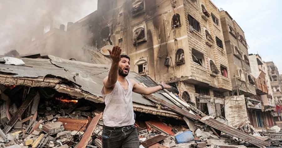 সংবাদমাধ্যমটি বলছে, ইসরায়েল সোমবার সন্ধ্যায় গাজা সিটিতে ব্যাপক বোমাবর্ষণ চালিয়ে এলাকার সর্বোচ্চ আবাসিক ভবন আল-ঘাফরি হাইরাইজ ধ্বংস করেছে। এই তীব্র হামলার কারণে লাখো বাসিন্দা শহর ছেড়ে পালাতে বাধ্য হচ্ছেন।